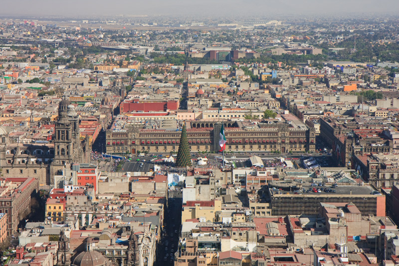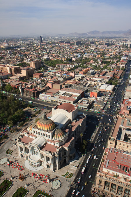 Orasul vazut din Turunul latino-american (Torre Latinoamericana, o cladire de 45 de etaje care a rezistat cu succes cutremurelor de 8 grade din 1956 pana azi). E ceva mai gri privelistea in realitate: