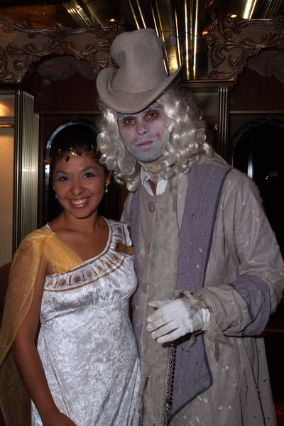 Ne intoarcem la ora 16:00. Ma pregatesc pentru set up, care incepe la ora 17:00. Astazi este halloweenul, pe bune (a fost si cu o saptamana in urma, ca aduce bani). Asa ca imbrac din nou costumul „Ghostly Gentlemen†si opresc lumea la iesirea din restaurant. Dupa doua reprize avem cica 600 de poze. Adica pana la 22:30.